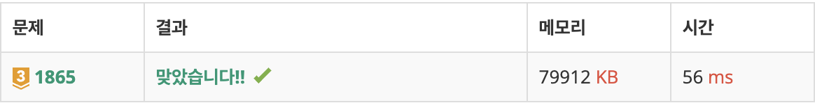 문제 링크 : https://www.acmicpc.net/problem/1865