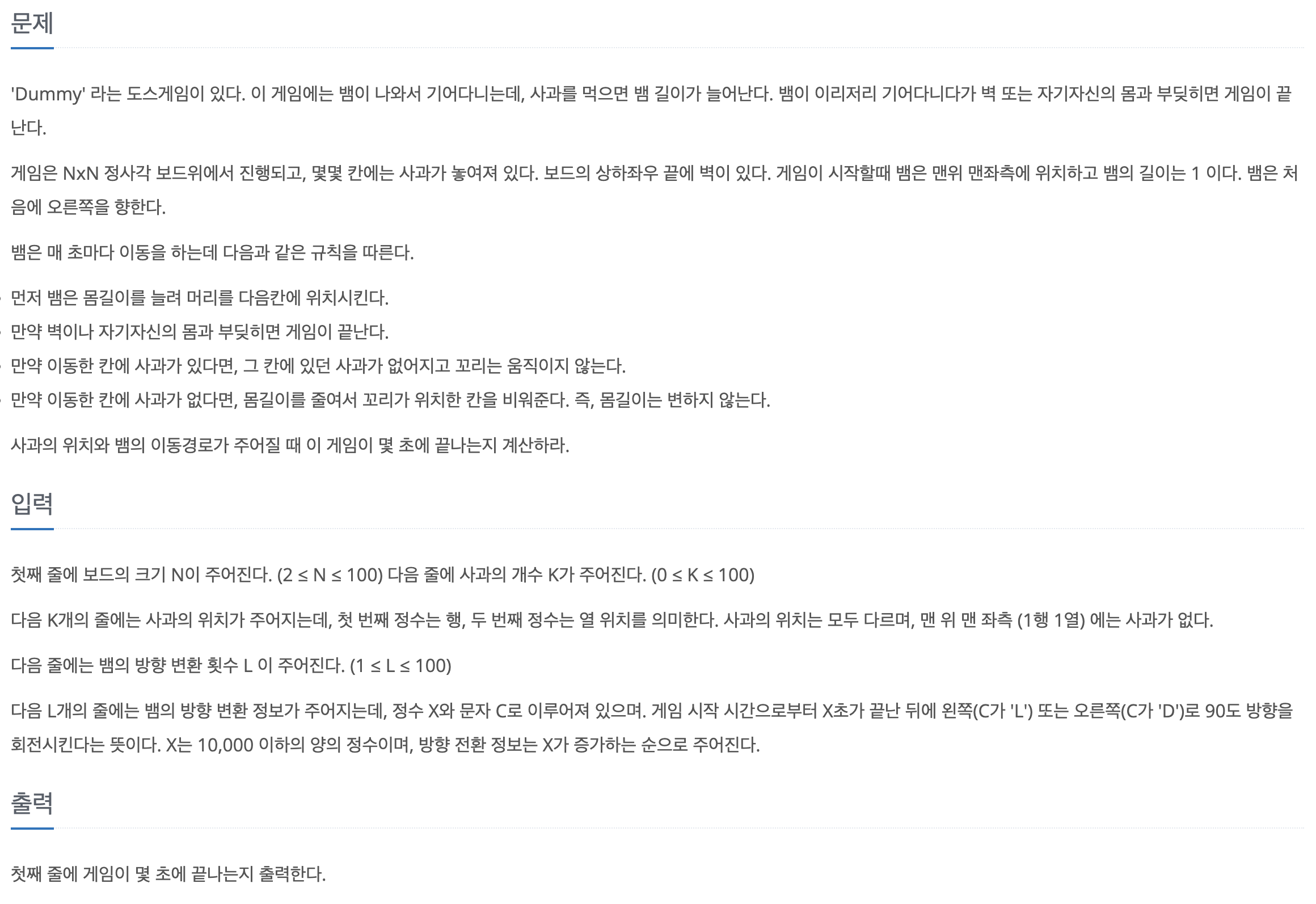 문제 링크 : https://www.acmicpc.net/problem/3190