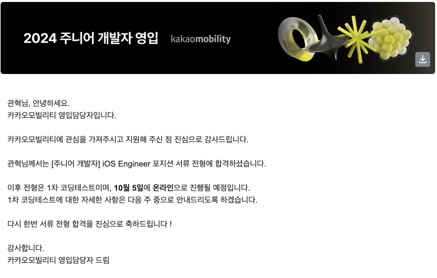 서류 지원은 무난하게 통과되었다. 자소서는 따로 쓰지 않았고, 이력서만 제출하였다. 아마 서류는 정말 이상한 것 아니면 다 붙여주는게 아닐까 싶다.